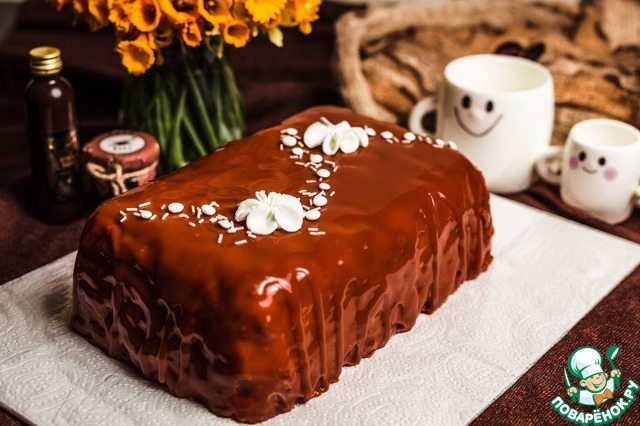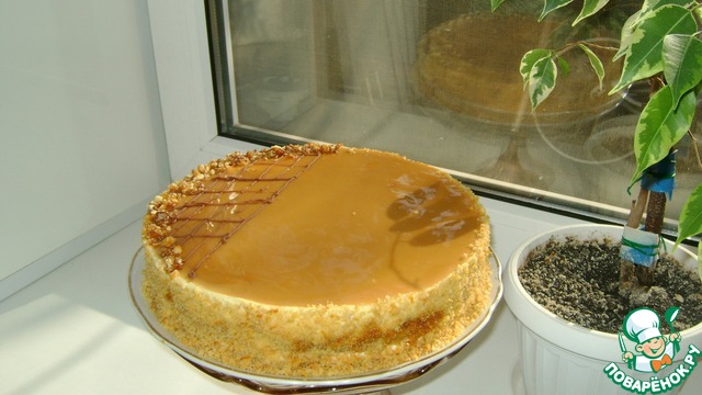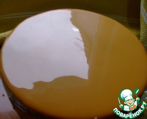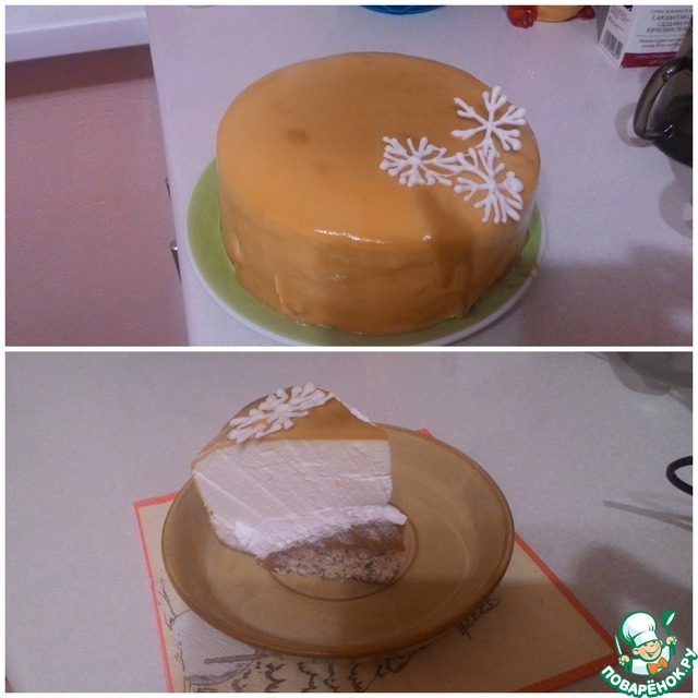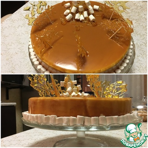 Карамельную глазурь по этому чудесному рецепту от Катерины Miuda я использовала для покрытия торта, сделанного мною по рецепту от Ирочки Iren D «Слоеный муссовый десерт по-французски»
