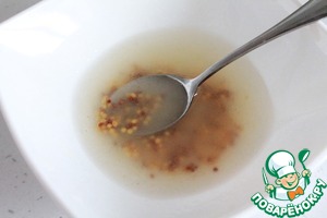 Добавляем к нему лимонный сок и французскую горчицу. Горчицу можно не добавлять.