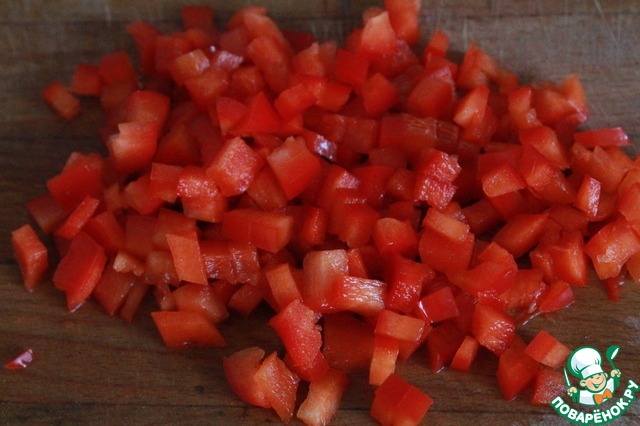 Перец также нарезаем кубиком. Лук нарезаем произвольно. |