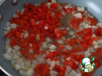 Обжариваем в течение 1 мин. лук и перец на растительном масле. |
