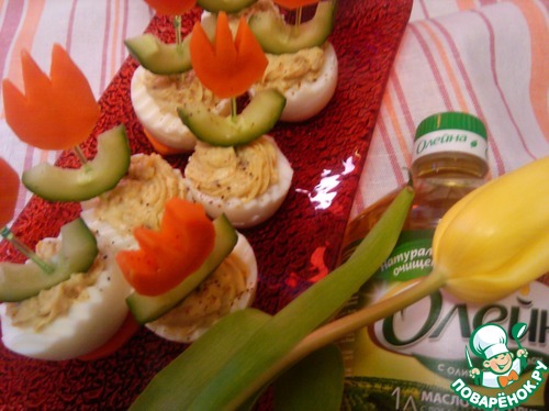 Корзиночки из яиц с паштетом из сельди и мультяшными тюльпанчиками