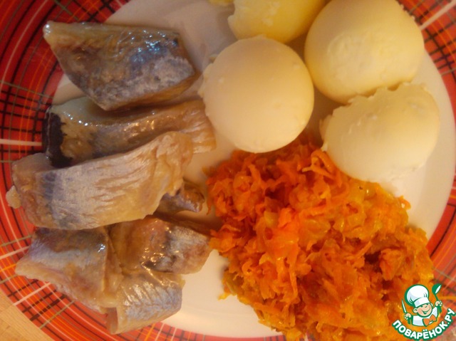 Желтки от яиц, обжаренные лук и морковь и селедку поместим в блендер и сделаем паштет.