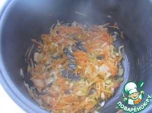 Налить масло в мв, установить режим жарки, в разогретое масло выкладываем овощи и обжариваем до готовности