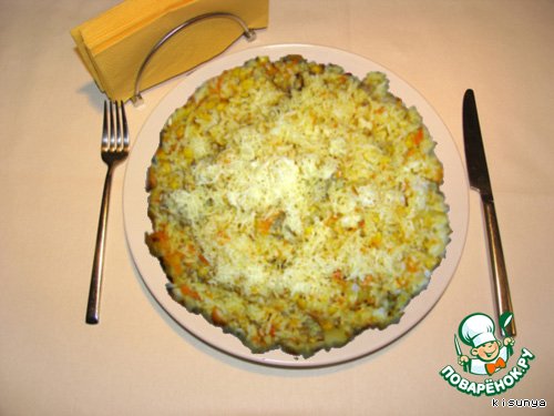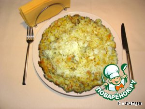 Блюдо, посыпанное сверху тертым сыром, подавать на стол.