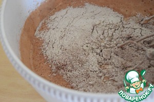 Смешать муку, разрыхлитель и какао. Просеять через сито.