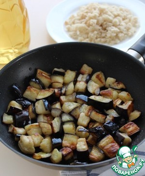 Положите баклажаны и жарьте на сильном огне, помешивая, пока они не станут мягкими и не поджарятся до румяной корочки.