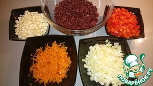 Наши ингредиенты. Фасоль уже отварена, посолена во время варки.. Не одобряю, но если времени в обрез, используйте консервированную.