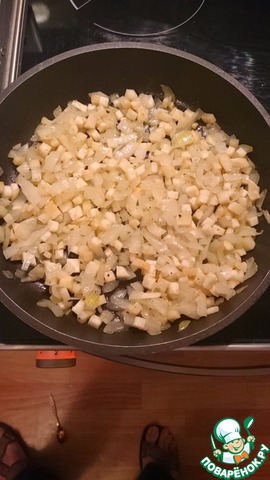 Пока варится фасоль, занимаемся остальными овощами. Лук с сельдереем пассеруем на растительном масле. Туда же можно добавить черный перец, он хорошо раскрывается в масле. Но, всегда учитываем свои вкусовые предпочтения, можно и не добавлять, так как морковь уже с перцем.