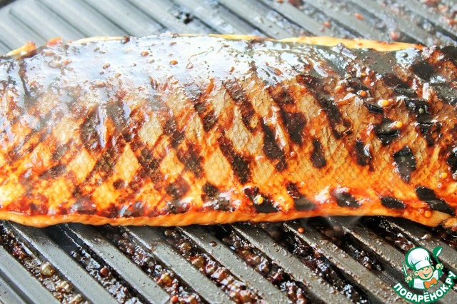 • Маринованную рыбу выкладываем на разогретый гриль.