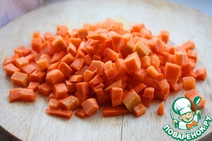 Морковь почистить и нарезать кубиками толщиной примерно 1 см.