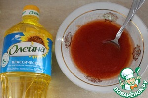 Смешать подсолнечное масло, томатную пасту, соль, перец черный и чили.