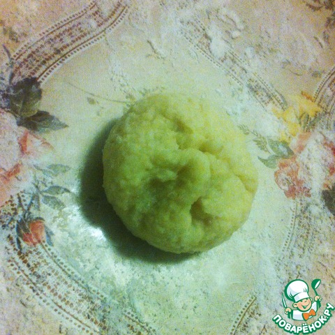 Очищенный, остывший картофель трем на мелкой терке! Выкладываем его на стол, сверху горкой сыпем муку, проделываем углубление, туда разбиваем яйцо, солим, замешиваем тесто!