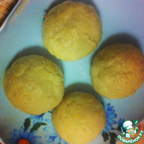 ... берем получившийся комок и катаем его в руках, чтобы получился круглый "колобок")) чуть приплющиваем и откладываем на блюдо! Таким образом лепим пока не закончится тесто или начинка) или все одновременно)