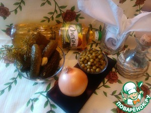 Ингредиенты для «Салат из горошка и маринованных огурцов»: