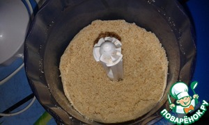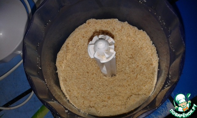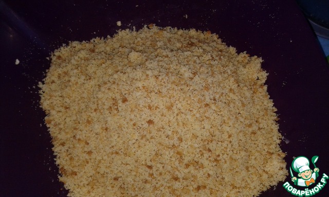 • В это время бисквит, приготовленный заранее и полностью остывший измельчить в крошку. Я готовила по рецепту http://www.povarenok .ru/recipes/show/103 974/ без добавления какао