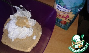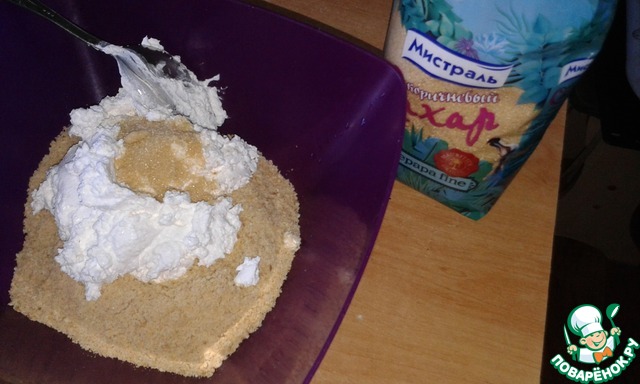 • Смешать творог и печенье, добавив тростниковый сахар и хорошо перемешать