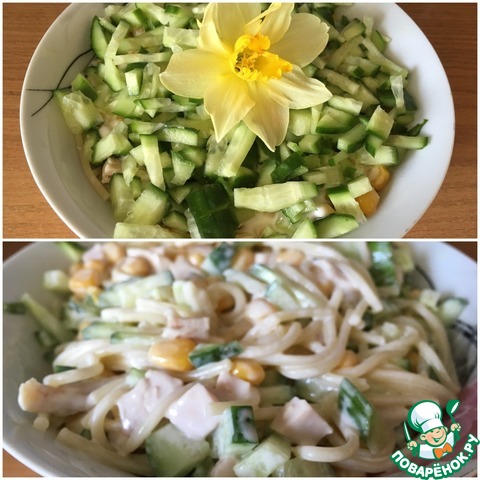 Несмотря на присутствие макаронных изделий, салатик получается довольно легким и освежающим! И очень вкусным!