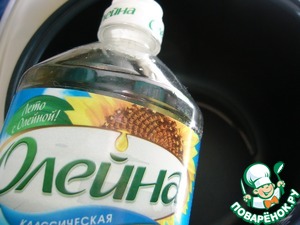 В чашу налить подсолнечное масло ТМ"Олейна" и включить режим "Жарка" 10 минут. -