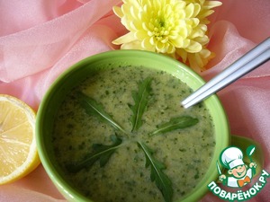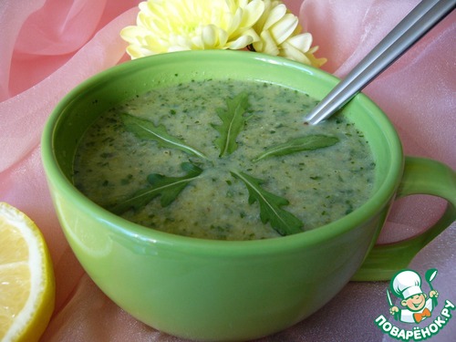 После сигнала перелить готовый суп в блендер, добавить рукколу, соль, приправы, сок лимона и измельчить до желаемой консистенции