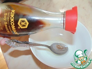 Влить одну чайную ложку соевого соуса Kikkoman.