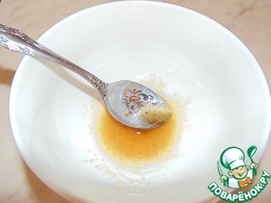 В миску налить по половине чайной ложки яблочного уксуса, кипяченной воды и 3 чайных ложки растительного масла.
