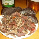 Мясо обсушить бумажными полотенцами и подвесить в прохладном, хорошо проветриваемом помещении. У меня это - холодильник с системой no-frost.
