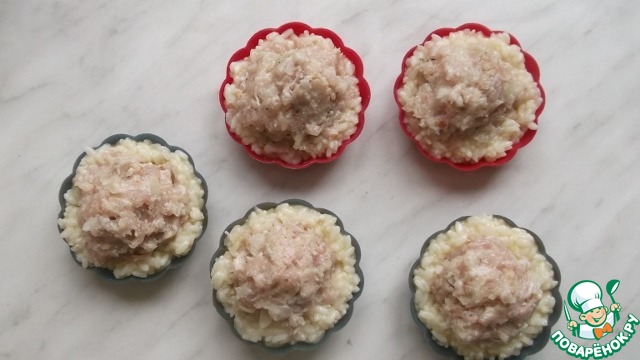 Мини-запеканка, сочетающая фрикадельку и гарнир. Красиво смотрится на праздничном столе, при этом быстро и легко готовится.