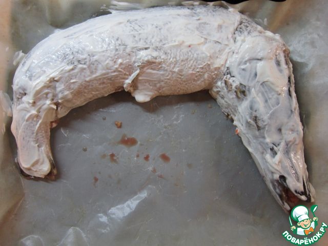 Уложить щуку на противень, смазанный маслом или покрытый пергаментом для выпечки (у меня тефлоновый коврик).