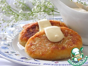 Дайте ему немного остыть, чтобы он не обжигал руки. Все хорошо размешайте. В результате у вас должно получиться не жидкое, но и не густое тесто. Возьмите небольшой кусочек картофельного теста, сделайте из него лепешку. В центр лепешки положите небольшое количество начинки. Приподнимая края лепешки, сформируйте пирожок.