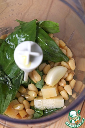 Пока варится суп, сделаем песто. Все просто: закидываем ингредиенты в блендер - и вперед!