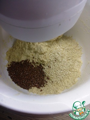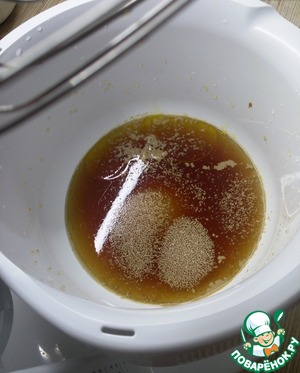 Добавить дрожжи и льняное масло (можно заменить оливковым)