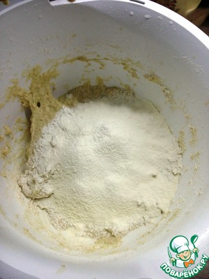 Продолжая мешать, всыпать отруби. У меня замешивает кухонный комбайн