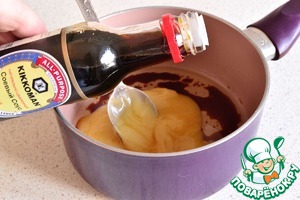 В сотейнике смешать подсолнечное масло, мед и соевый соус.