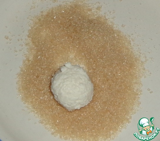 Из творожной массы сформировать шарики. На тарелку высыпаем тростниковый сахар и обвалять в нем шарики из творога.
