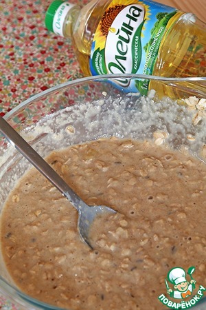 Добавим жидкие и хорошо перемешаем. Именно просто перемешаем, не надо ничего вымешивать или взбивать, даже венчика не нужно - достаточно ложки!