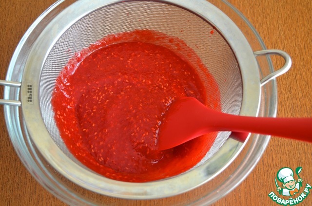 1. Малину измельчить в блендере и протереть через мелкое сито.