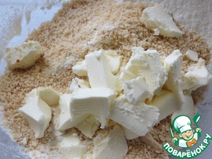 • Просеять муку, добавить масло и миндальную муку. перетереть всё руками.