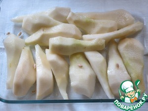 • Очистить груши от кожуры, разделить на 4 дольки каждую и полить сверху соком лимона.