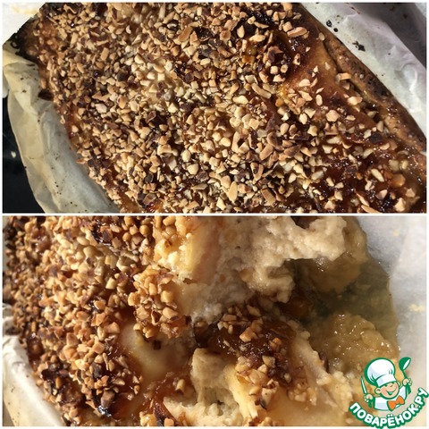 Во-первых, видимо, нужно брать форму больше, чтобы слои были тоньше, у меня слишком жидкая вышла начинка и вся потекла, накладывала ложкой пирог