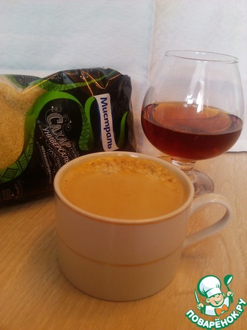 В остывший кофе добавляем сахар "Мистраль" и коньяк