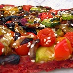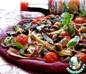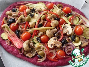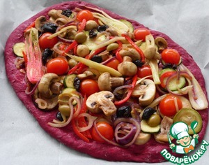 Рецепт «Пицца из свекольного теста с овощами и грибами»: