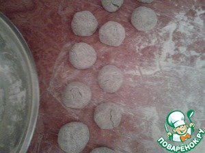 Отрезать не большие кусочки теста, размером с грецкий орех.