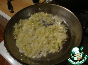 На раскалённом растительном масле обжарить до прозрачности лук.