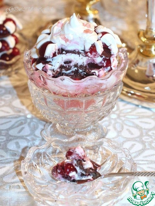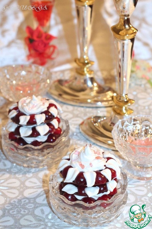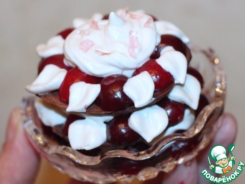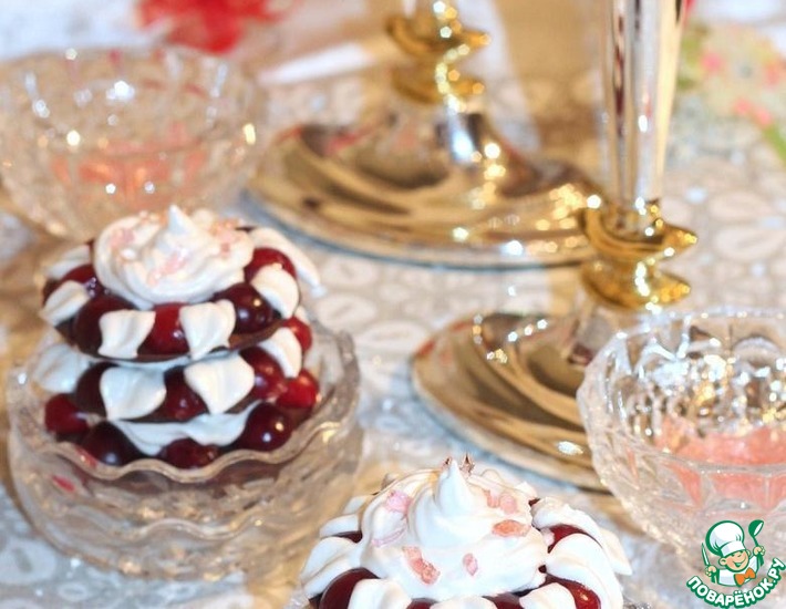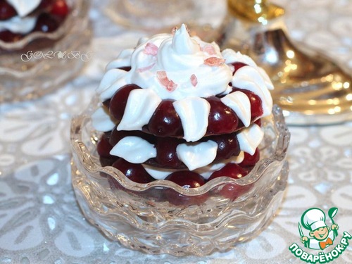 Очень вкусный десерт с белковым кремом, шоколадом с миндалем и ягодой. Это просто праздник вкуса, цвета и необыкновенно аппетитного вида!