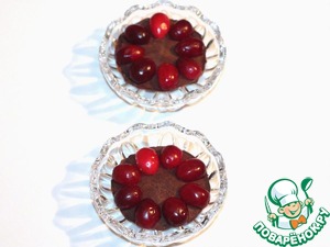 Собираем пирожное. Оно состоит из трех кружочков. Вначале кладем один кружок на него по кругу раскладываем мелкие ягоды.