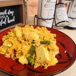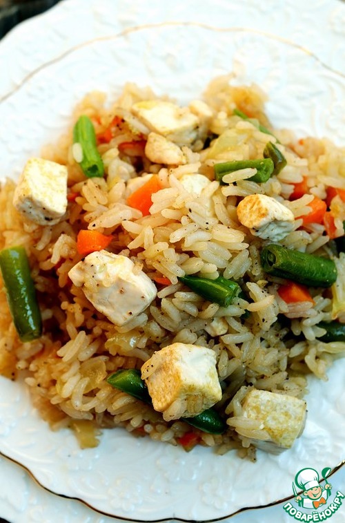 Жареный рис с овощами и соевым сыром
