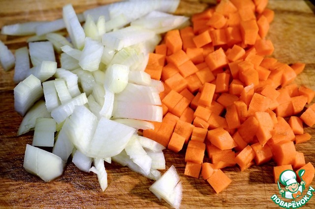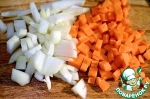 Лук и морковь почистить и нарезать кубиками.
