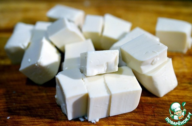 Тофу нарезать кубиками 2 на 2 см.