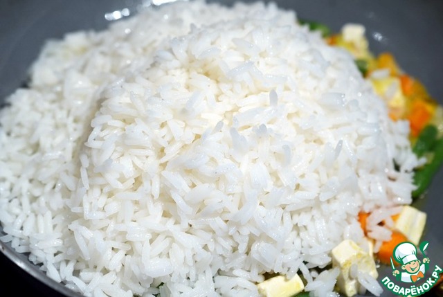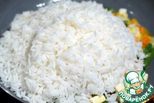 Добавьте холодный рис.