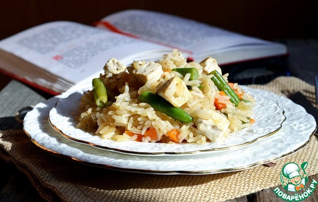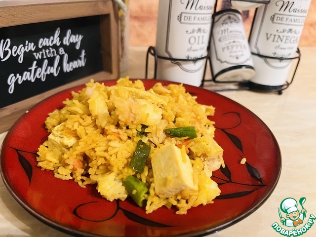 Этот рис похож на рис по-Тайски: остренький, сытный и питательный. Соевый сыр - тофу, - продукт соевых бобов, очень похожий на сыр, придаёт этому блюдо изюминку. В любом случае, это блюдо немного разнообразит Ваш постный стол.